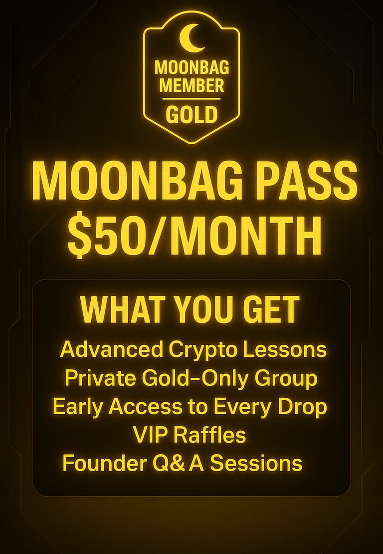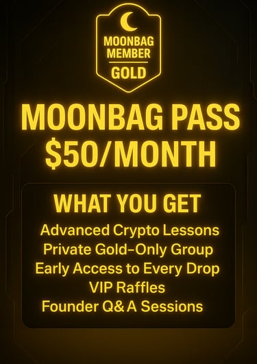 The MoonBag Pass (Silver) is your monthly membership into the MoonBag Boyz ecosystem — giving holders insider access, crypto education, private updates, and community-power perks. It’s built for beginners, investors, and supporters who want to be part of the movement for a low monthly cost.